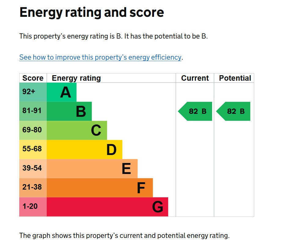 EPC: Band B82. Council Tax: Band C. Information received relating to flood risk:- Rivers and Seas...very low...Surface water...low. Title number YY90534.